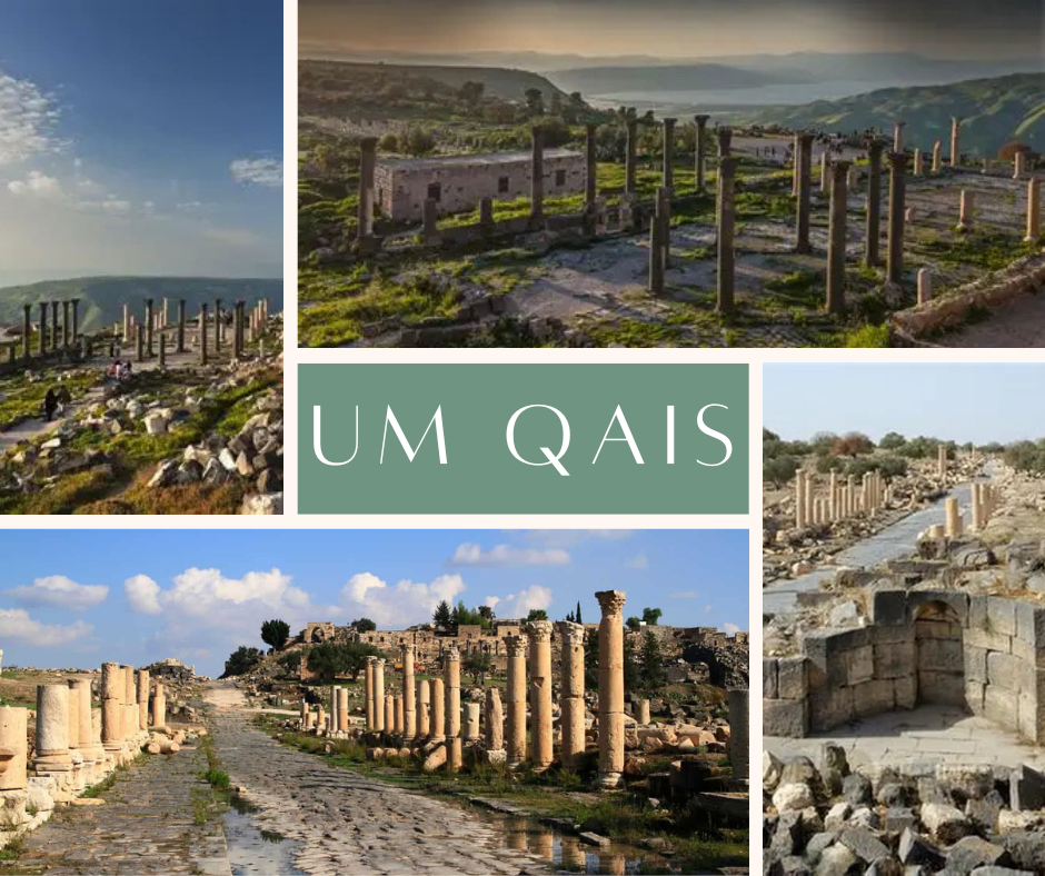 Located fifty kilometers north of Jerash, Umm Qais was renowned in its time as a cultural center and home to several classical poets and philosophers and was often referred to as “a new Athens”. Umm Qais has become a popular tourist attraction, and a frequent destination for day trips from the capital, Amman, as it is around 110 kilometers away to the south. It is popular not only because of the extensive ruins but because its position on a high hill near the northwestern corner of the country, allowing for panoramic views.